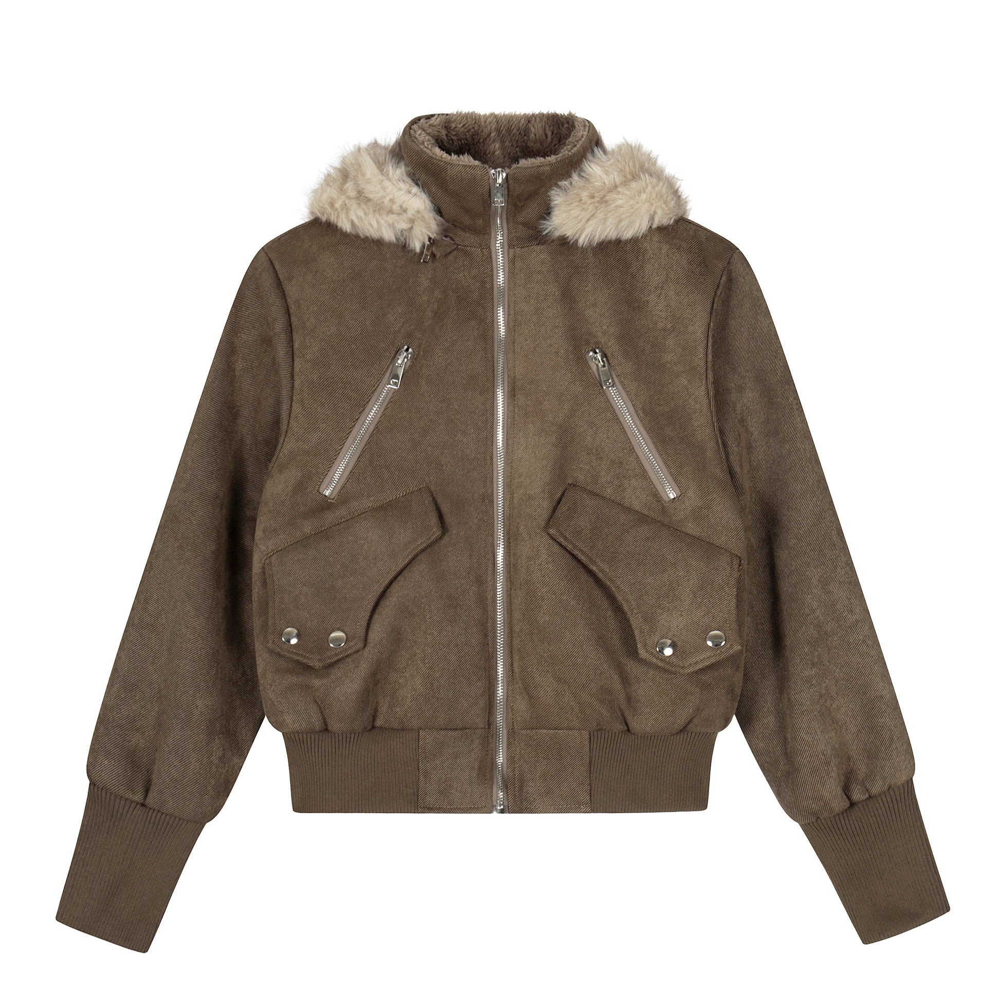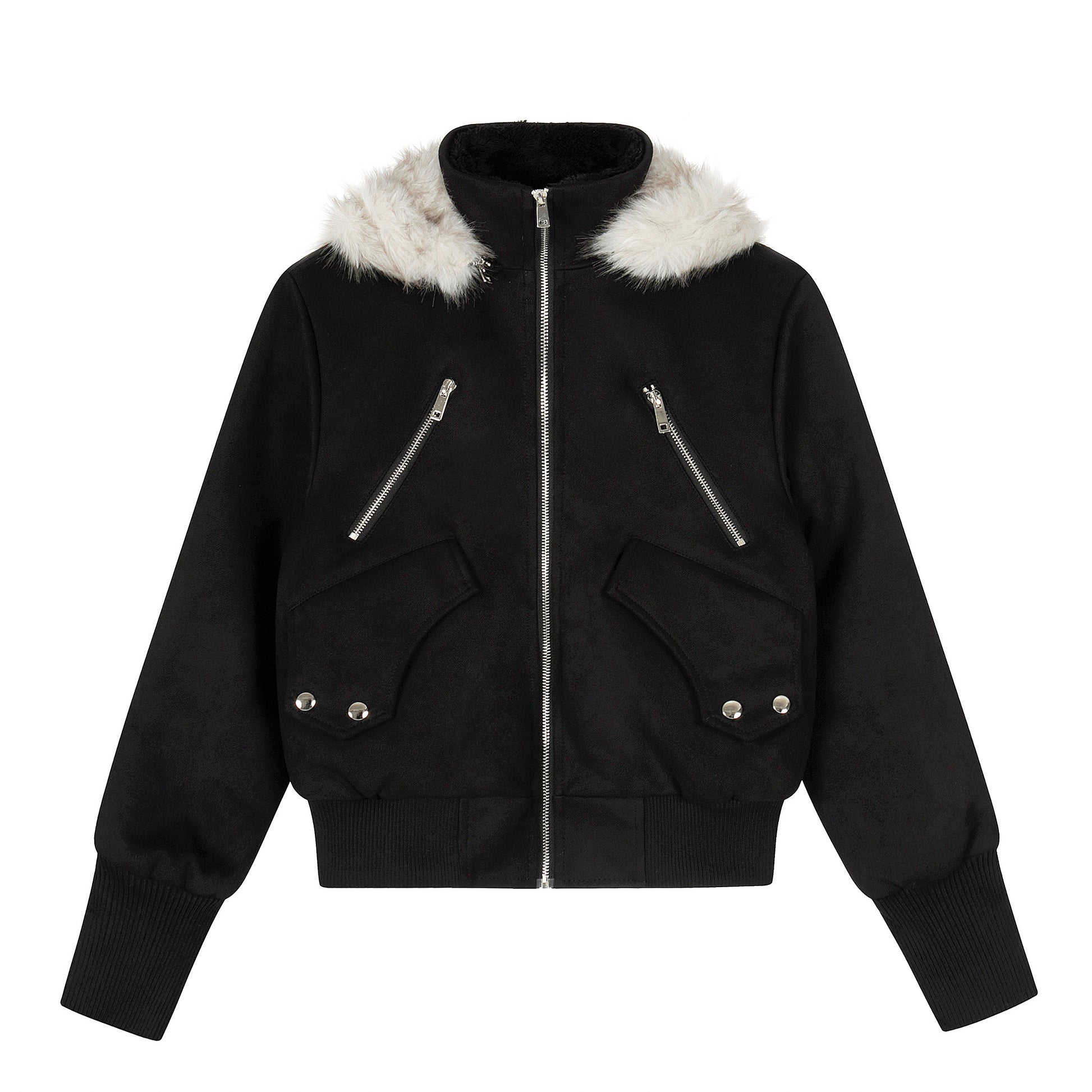 Urban Luxe | Bomber Jacket with Faux Fur...