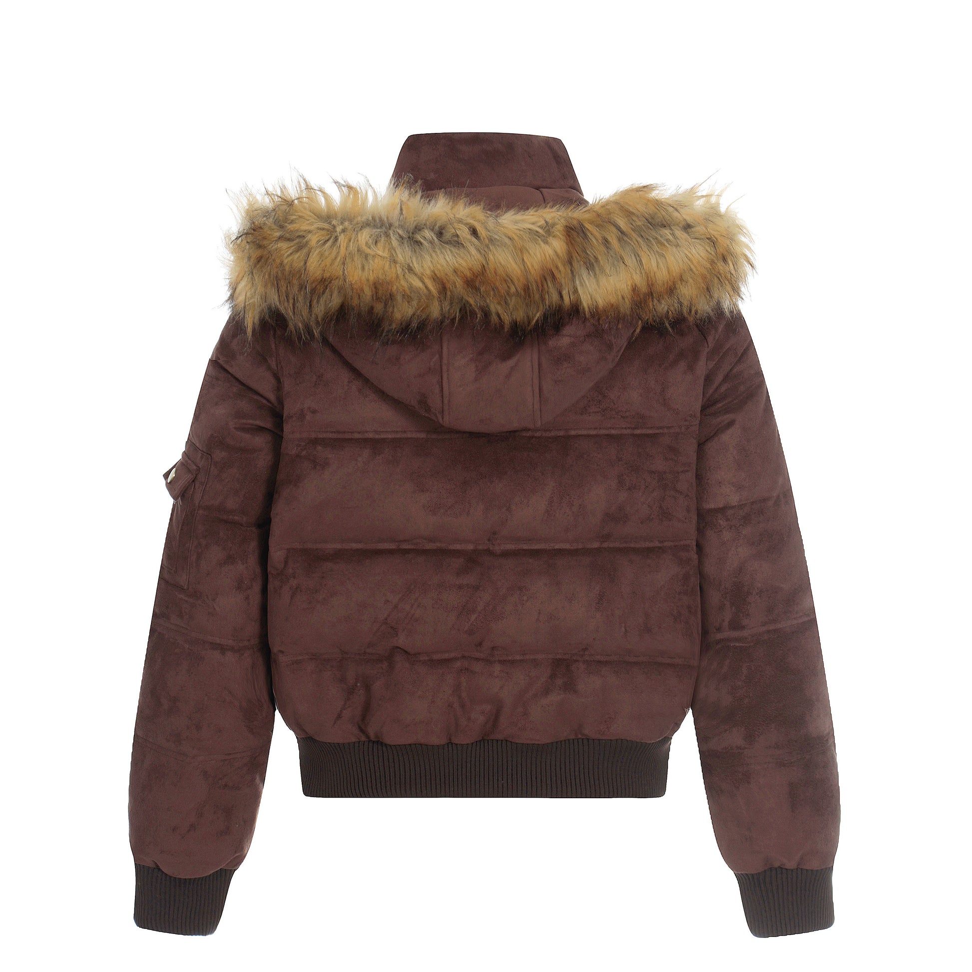 Classic toggle details and a plush sherpa collar give this faux suede puffer a timeless alpine charm. Built for cozy strolls and vintage winter layering.