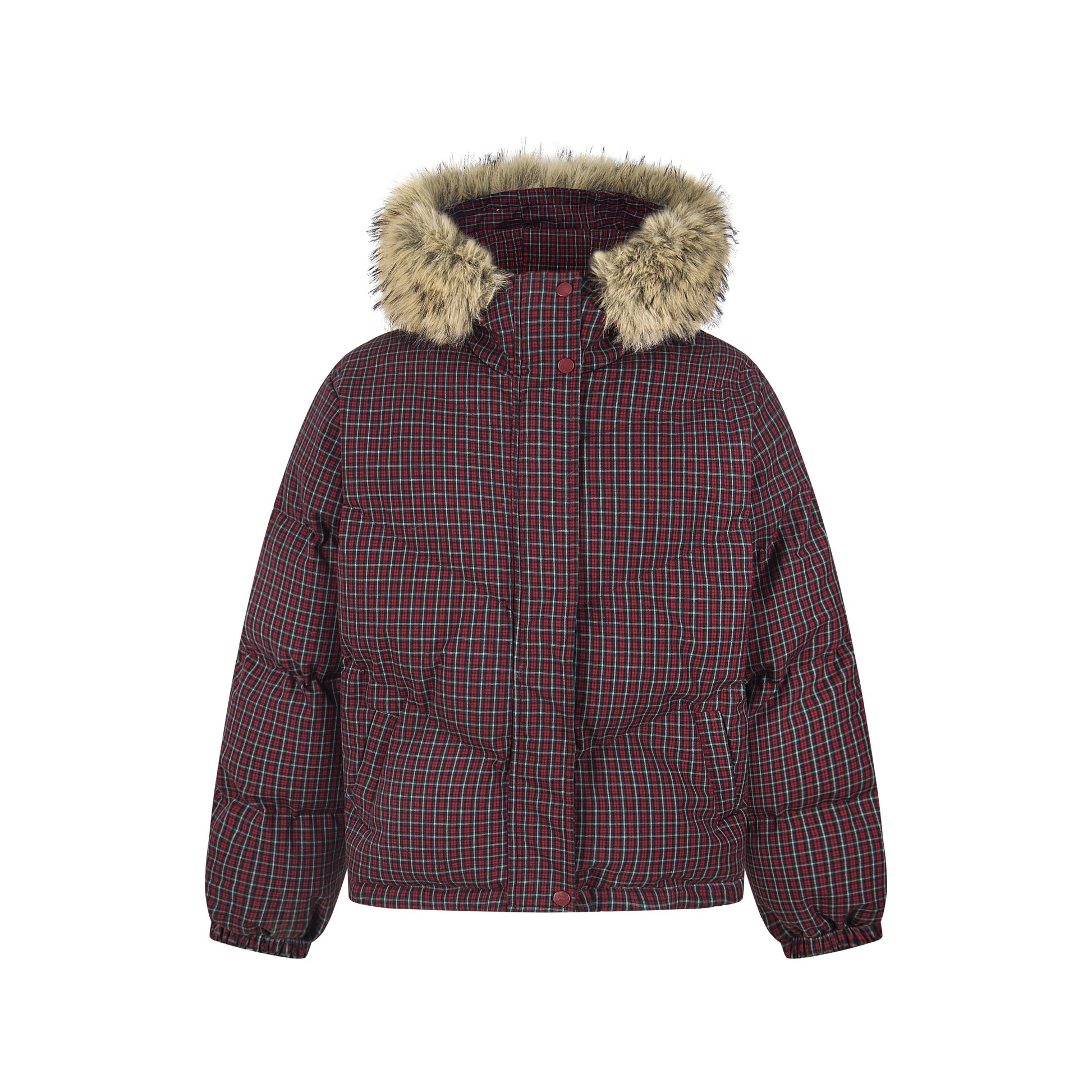 Winter Nest | Faux Fur Trimmed Plaid Puffer